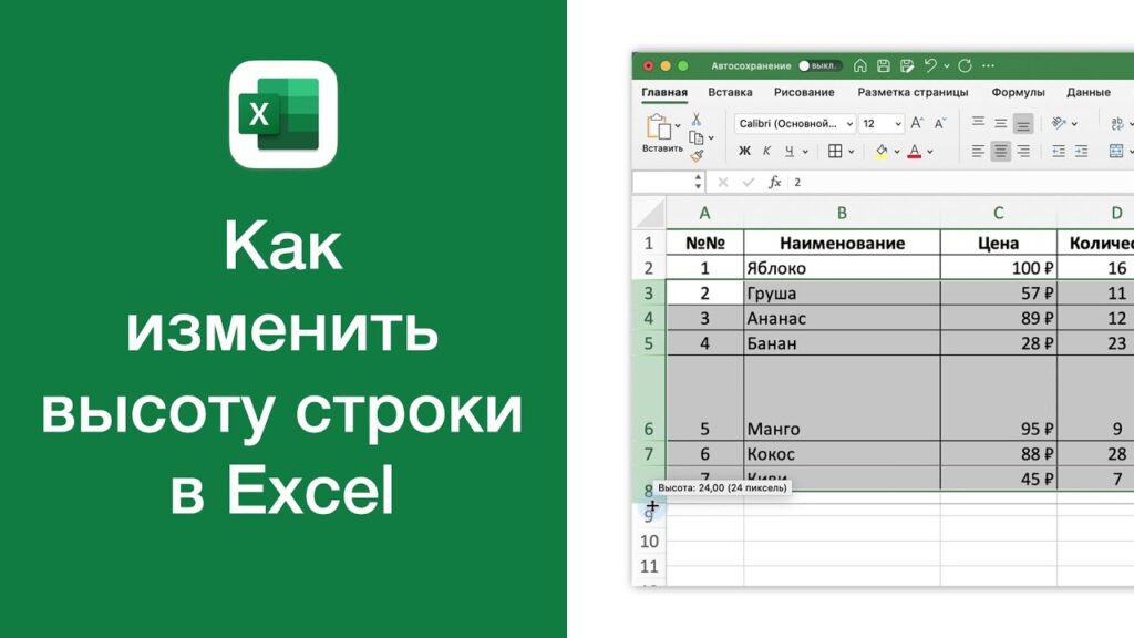 Как увеличить высоту строки в Excel вручную?