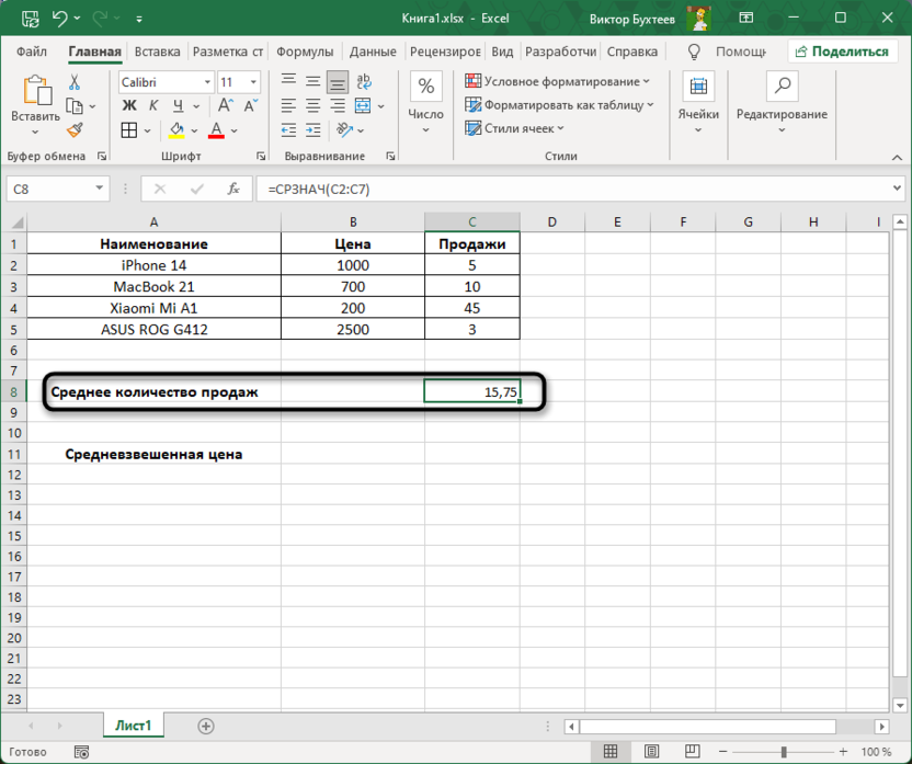 Функция СРЗНАЧ в Excel: расчет среднего значения и примеры использования